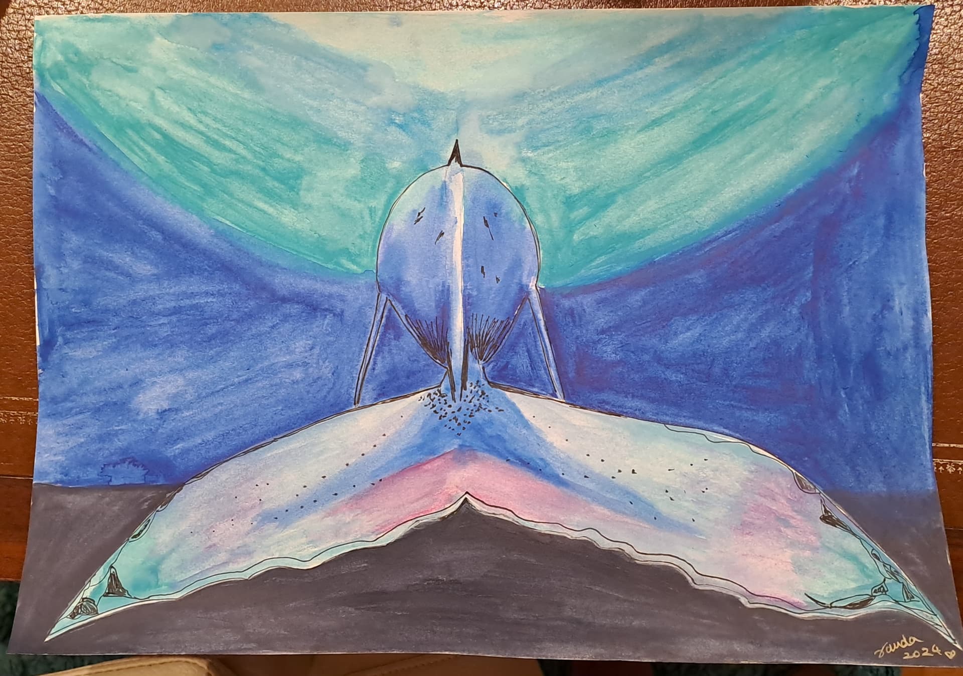 Looks to me like a dolphin swimming toward the moon. It is so surreal it could easily be a dolphin leaping towards it from the water or flying towards it. Water, its creatures, and the moon are all deeply connected to one an other.