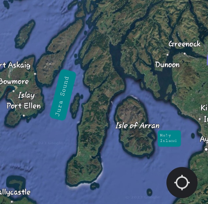 Then i read the photo was taken in Jura Sound in Scotland which is near the tiny Holy Island where Charlie Morely is having the Lucid Dreaming retreat in July. I made a map